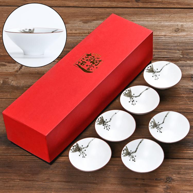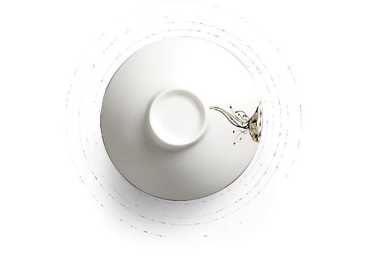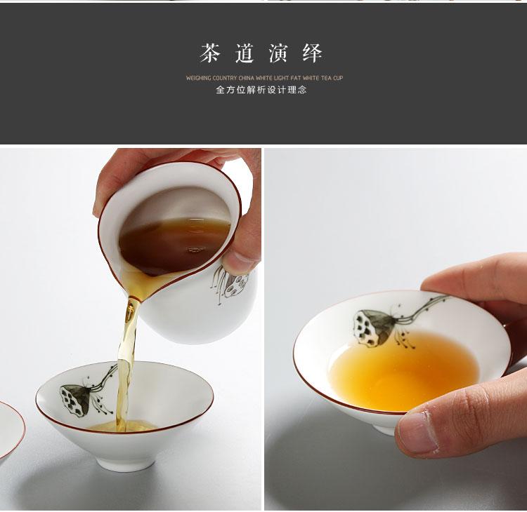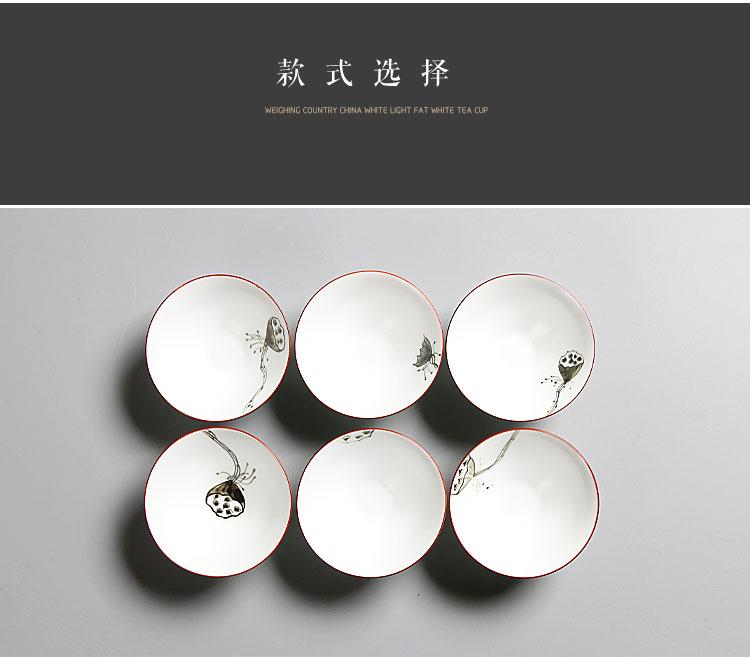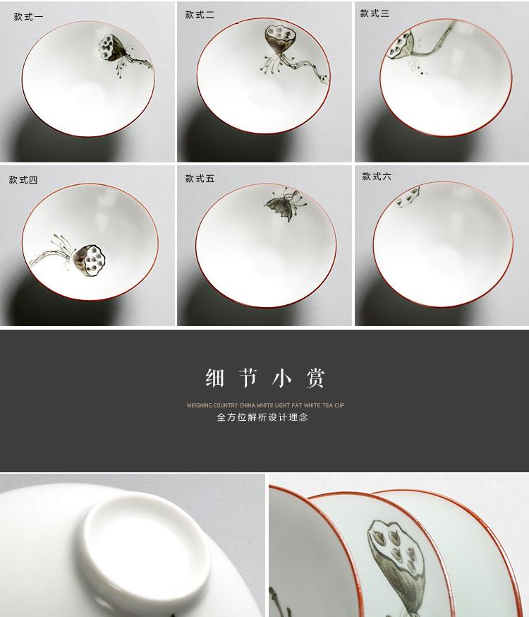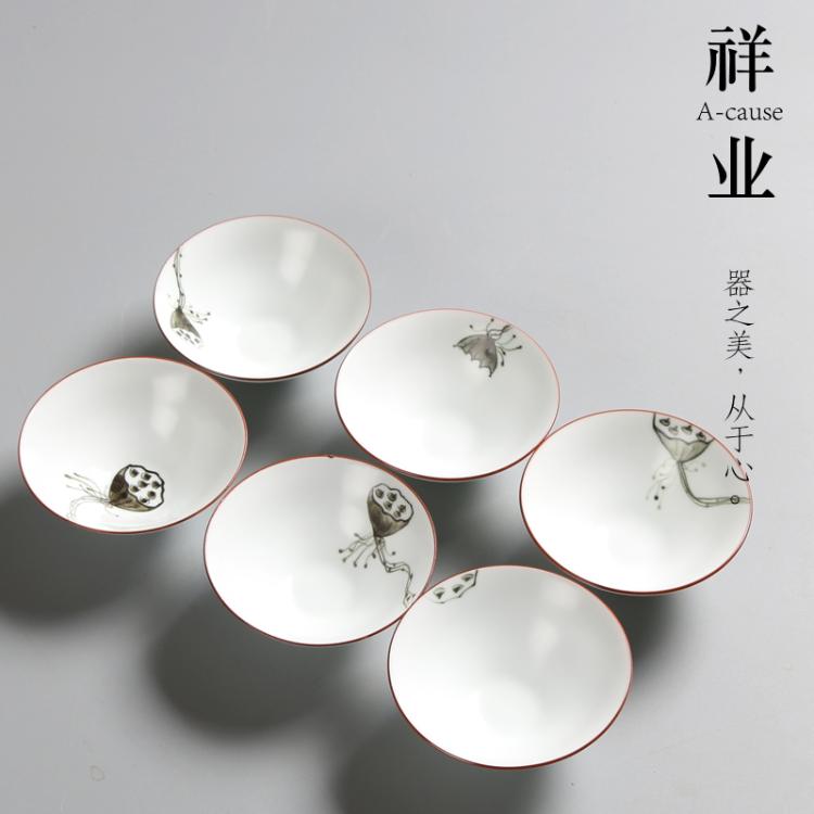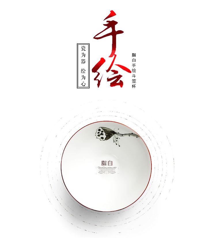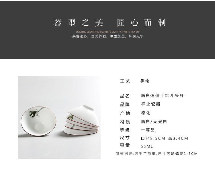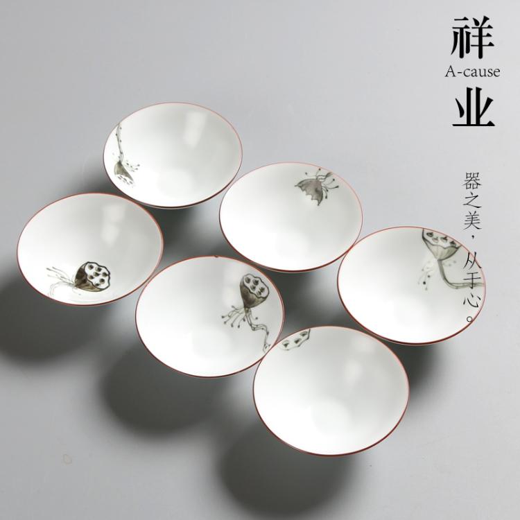 祥业 脂白手绘斗笠茶杯宫廷墨彩无光白定窑手绘功夫茶杯组茶道杯