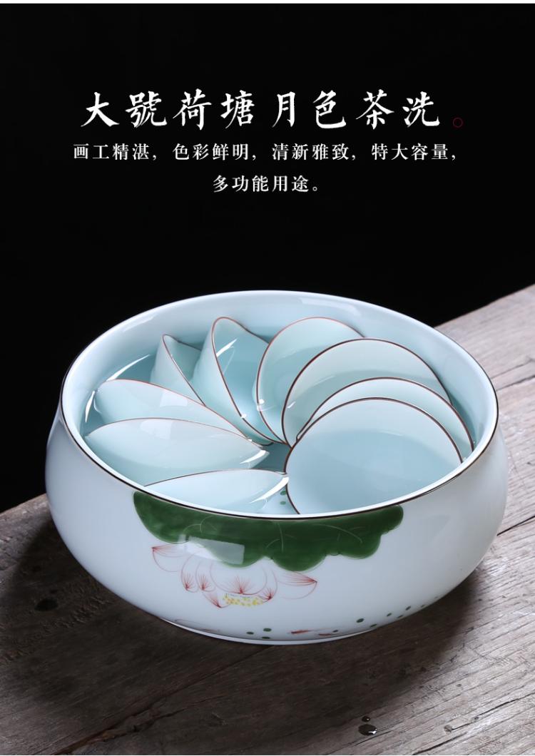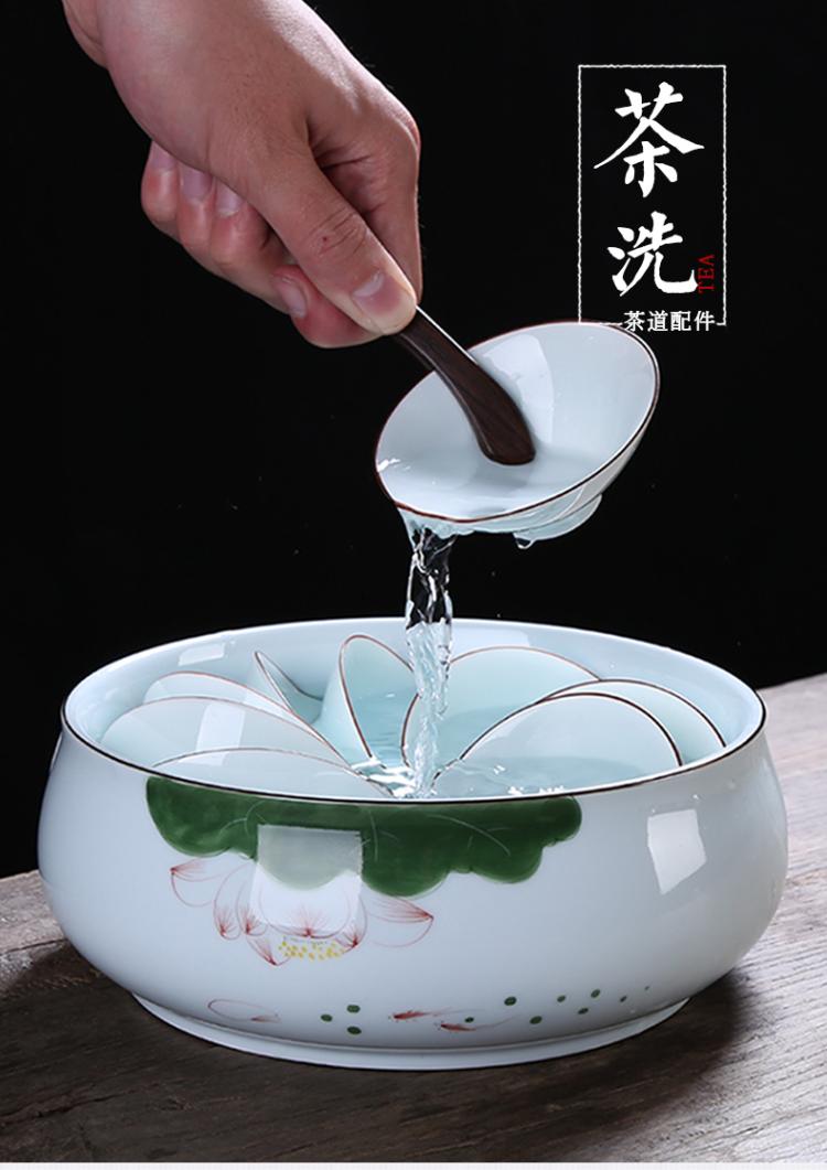 大号茶洗茶具笔洗青瓷粗陶陶瓷果盘干泡茶具配件水盂水洗杯洗